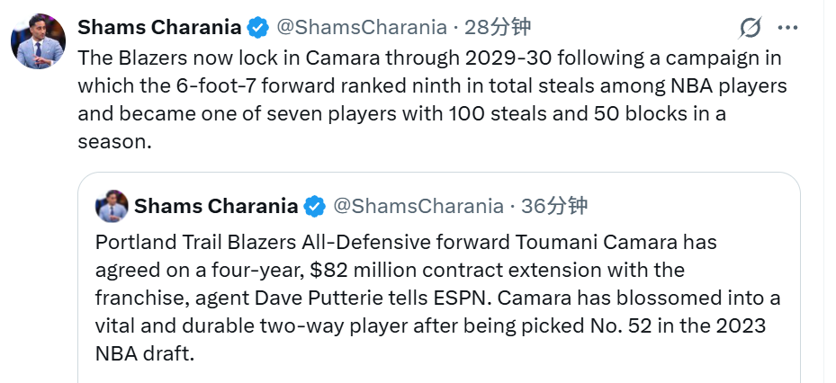 杨瀚森两大队友提前续约!夏普4年9000万 卡马拉4年8200万